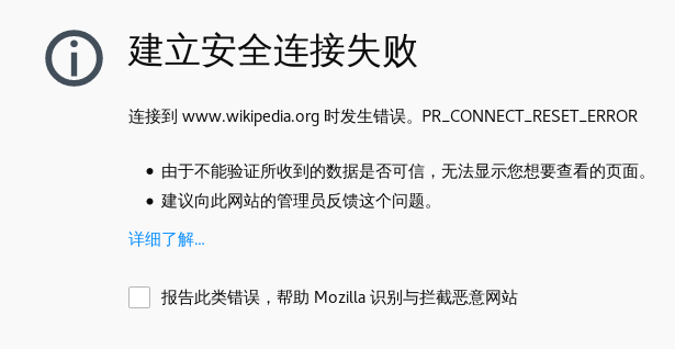 To check whether the blocking of Wikipedia domains could be circumvented by merely encrypting DNS traffic, we attempted to enable DNS over HTTPS in Firefox.