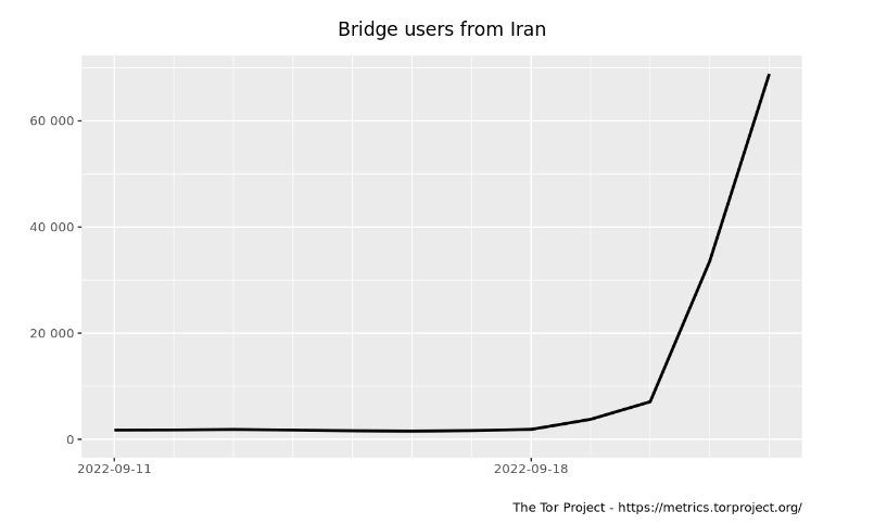 Chart: Tor bridge users connecting from Iran in September 2022 (source: Tor Metrics).