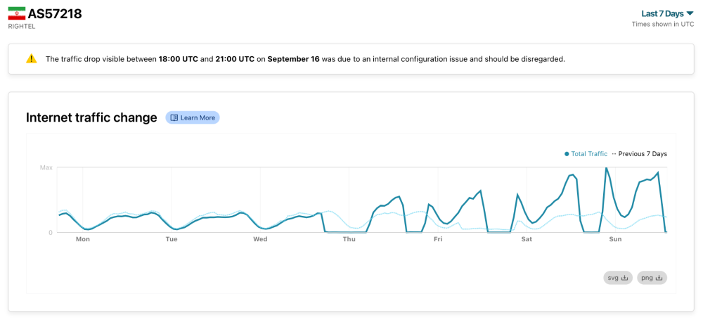 In addition to the above blocks (and many other long-term blocks), Iran experienced multiple severe outages affecting mobile networks over the past week, which are visible in the IODA, Cloudflare Radar and Kentik datasets.